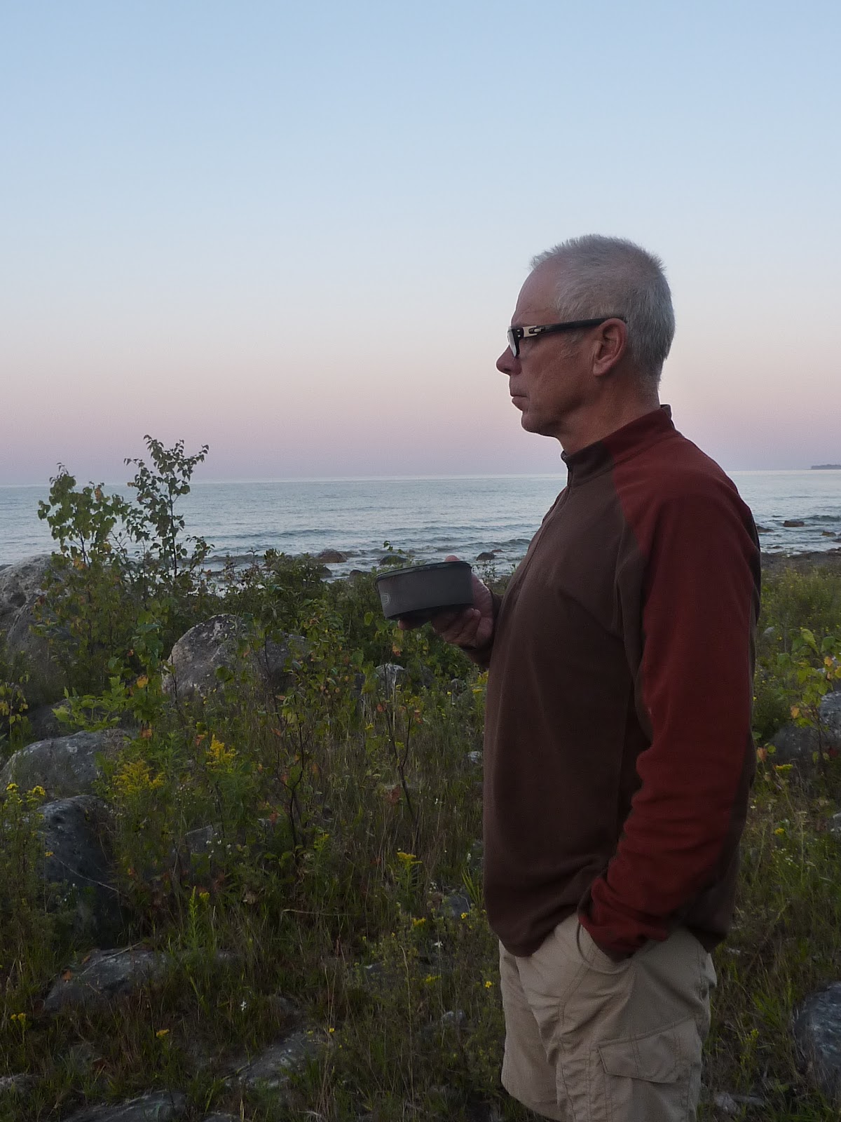 The UP was pleasant. The hills had mellowed and the forests became more predominantly fir trees. Wisconsin had many more deciduous trees like Maple and Oak. The folks of the UP are extremely friendly and have a wonderful sing-songy lilt to their speech with hard consenants  and short vowels. I find it very pleasant and could listen to them talk all day.Our favorite campsite, to date, was in the UP. It was along the north end of Lake Michigan yesterday at an isolated primitive forest campground. We listened to the sound of waves all night and felt like we had the campground to ourselves.