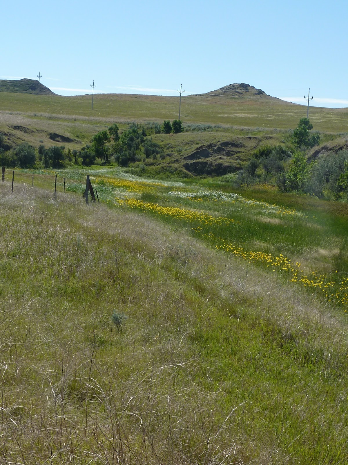 Karla: Tomorrow we complete our route through North Dakota and as I look back I have one overriding memory – WIND. Every day, in every way, our experience was defined by how the wind was blowing. We faithfully checked the weather reports for which direction it would blow, drilling down to the hour by hour forecasts. Not just the night before for the next day, but throughout the day itself, as if we couldn’t just feel it on our faces or throw some grass up into the air and see which direction it was carried! We dreamed about a full day of the wind at our back and predicted how far we could ride if we hit the road early and rode ’til dinner. But, mainly we cursed the reality of it as it blew in our noses or angled across our shoulders or blasted us from the side. The wind could make or break how the day went and how we would feel at the end of it. In truth we had only two days of direct tail wind that we were able to utilize to extend the distance covered. The other days were a mixed bag due either to the constant change in direction of the route itself, or the fickleness of the wind as it defied the most in depth meteorological analysis. I recall one day in particular when we battled a 15 mph headwind for 13 miles before the route finally made a 90 degree turn, changing the force to an assault from the side. At the corner of the intersection we stopped at a convenience store to eat and rest, a surefire way to boost energy and bolster morale. I dragged myself off the bike and tugged the door open, feeling lucky to be able to do either, then semi-staggered to the sandwich counter. The cook was friendly so I asked her how hard did she think the wind was blowing. She looked directly at me with a slightly surprised expression and said, ” Oh, is the wind blowing today?” Then she laughed and added, “You should see it when it is windy!” Well that humbled me, but only for a minute. I was sure she was just exaggerating for the benefit of the stranger in town and I reverted to feeling quite self-satisfied at the Herculean job I was doing battling the forces of nature. That’s the other thing I remember from my time in ND, the terrific power of the forces of nature here. And as I’ve been riding, I’ve been afforded the time and circumstance to consider what it must have taken for the people to settle these parts. It’s such an incredible area of our country; beautiful, rugged and austere. Vast, wide open plains with wild winds constantly sweeping across the landscape. The beauty of the prairie subtle in its slight gradations of colors and contours, and simultaneously magnificent in its panoramic scope. Vistas of dried grasses and blue-grey shrubs, punctuated with the sweet, pungent scent of sagebrush for miles; then changing to grand fields of wheat, hay and sunflowers with the aromas of freshly mown grains and blooming seed heads. What incredible tenacity it must have taken to bend the land to the will of the white man.
