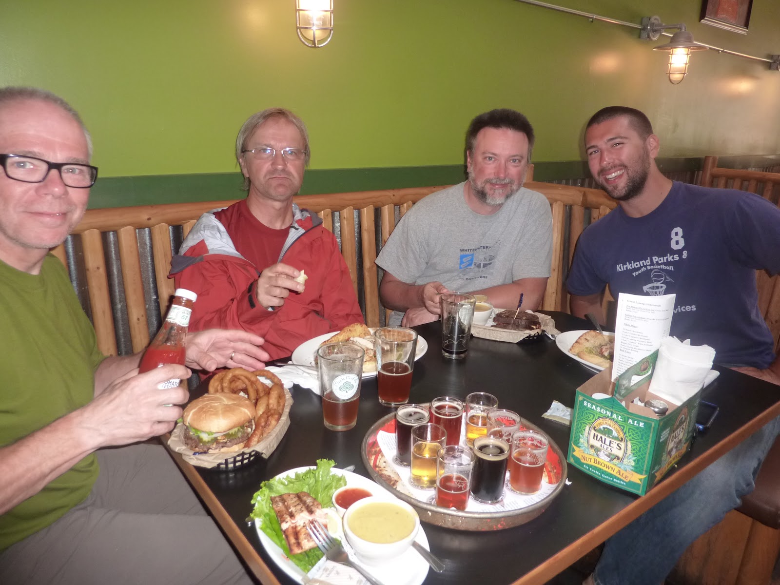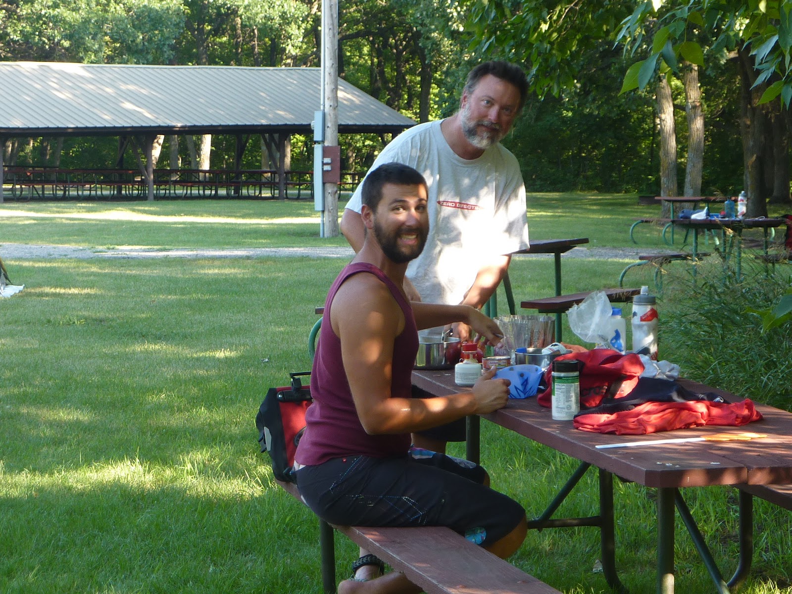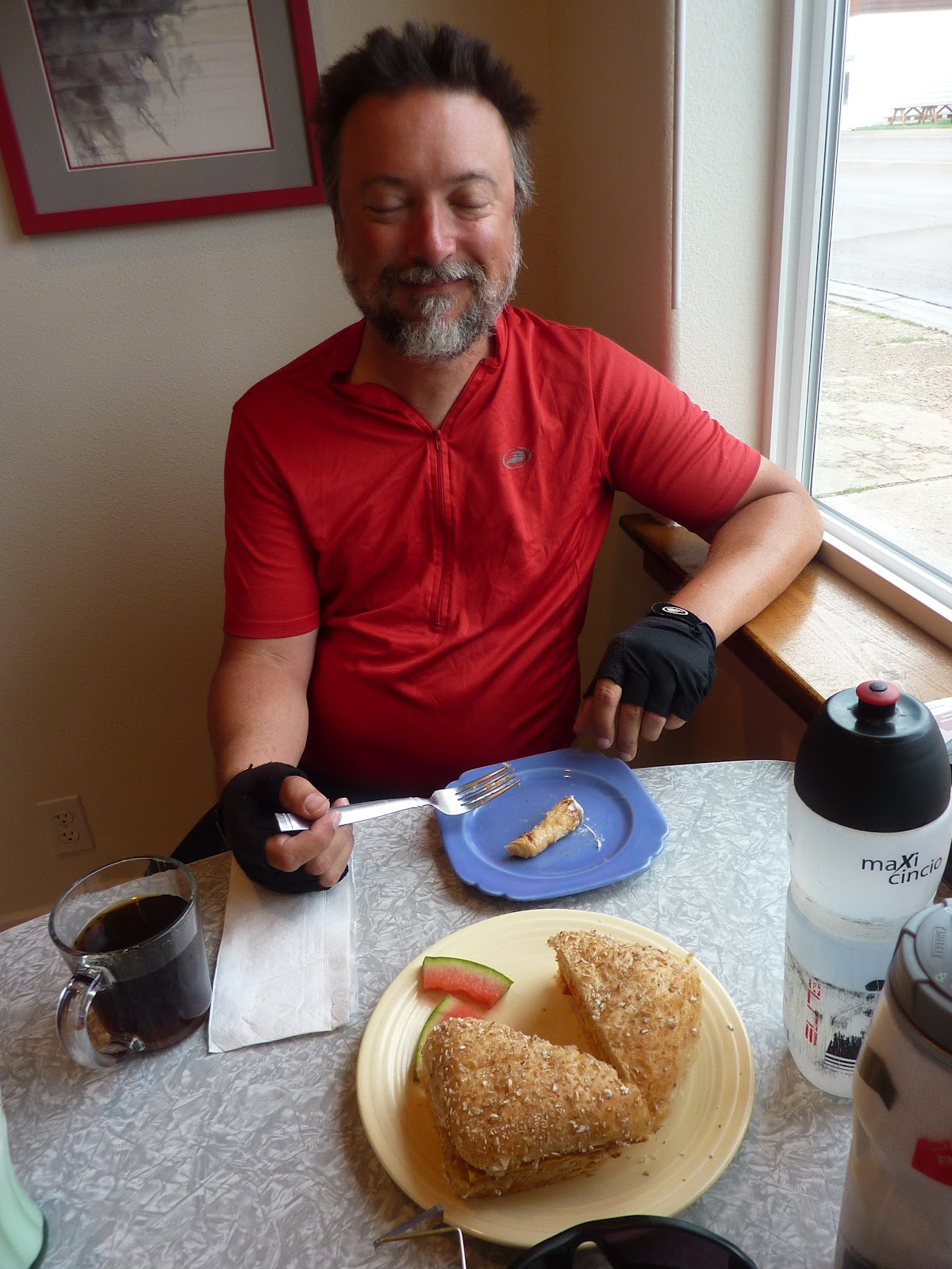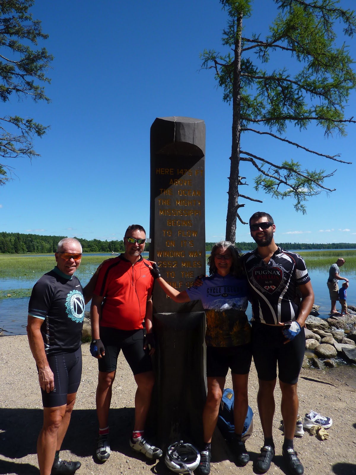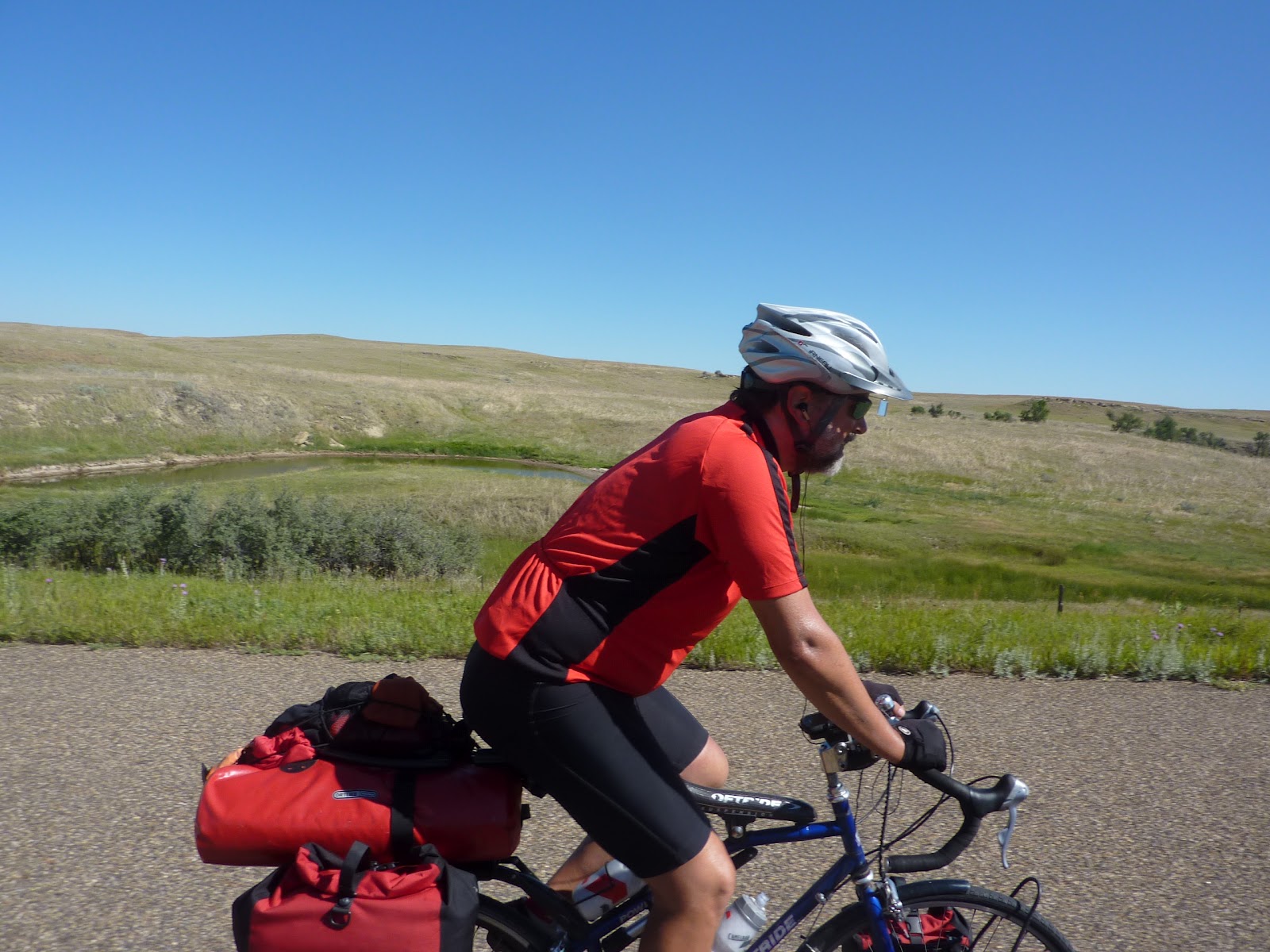 We called them “the boys,” although they were father and son, and they were our almost-constant companions for over three weeks. We first met them at an RV park along the Pend Oreille River in Newport, Washington. Eric, the father, and David, his 24 year old son, were between jobs when they decided to bike from Bellevue,WA to Michigan to visit friends and family. We chatted for a while after the all-you-can-eat pancake breakfast, then parted ways as Scottie and I took off for Sandpoint, Idaho. Later that day we ran in to them again heading into osprey territory and we teamed up for the final miles into Sandpoint. As we approached the bridge over the Pend Oreille to the town, the heavens opened up and we were deluged with the largest rain drops I’ve ever seen. We all pressed on, however, and the sun was shining on us as we rode into Sandpoint. Plans were made to meet up for dinner and we toasted our survival at a great brewpub. Next day we wished each other well and went our separate ways. The boys were going off route several days to visit a friend’s house and we were bound for Glacier NP and rendezvous with Lilly and Curtis. End of story. Until we met them unexpectedly in the campground in Canada after our visit with Lilly. Well, it was Kismet. We compared notes and realized we were riding on to the same town. We played leapfrog on the route, again in a torrential downpour, then ended up sharing the last room available in Cardston. The die was cast, we were mates! From then on every day started with the cheeriest “Good Morning” from Eric. David would inevitably leave camp after the rest of us then blast by as only the young and fit can do. They both were techies and were either listening to music and podcasts, reviewing the route and weather forecasts or checking Facebook and answering texts as they rode. Although we all rode our own pace, the majority of the day was spent within sight or sound of each other, and we all would hang together if there was some obstacle to be overcome. Certainly all meals were spent together: breakfast, second breakfast (usually a couple of hours into the ride), lunch, ice cream break( at the end of the ride just before making camp) and dinner. If one needed a comfort break, either for a call of nature or to rest the butt, those riding together would take it, being careful to avert the eyes as needed. If one needed a rest day, the whole group took it as a tacit agreement had emerged that we were sticking together. And it was share and share alike, sometimes even unwittingly. Before going up over Logan Pass Scott and I decided to shed weight and had left a half-full can of fuel behind figuring someone would find and use it. Weeks later, while traveling with the boys, we were almost out of fuel. When Eric offered us some of theirs, we gladly accepted. He hauled out a familiar looking can and explained, “We found this in Glacier at a hiker/biker campsite.” You guessed it – they had found our can. So thoughtful for them to carry our fuel for us! But, these are only objective details about our time together, what I really want you to know is what made these guys and our time with them special. Both of them were gentle, intelligent and truly funny men. Over the next weeks we made it through all kinds of challenges, including some very tough rides, but the boys were never far from our view, always upbeat and never let our spirits lag. They helped solve problems, get weather reports, find places to stay and eat, made us laugh, shared an awe of nature and contributed to the dissection and analysis of human nature as we observed it along the way. No matter what the circumstances, we shared them and made fun of them. It was all for one and one for all for 24 glorious days. Thank you, Eric and David, you two gave us an unforgettable time together!