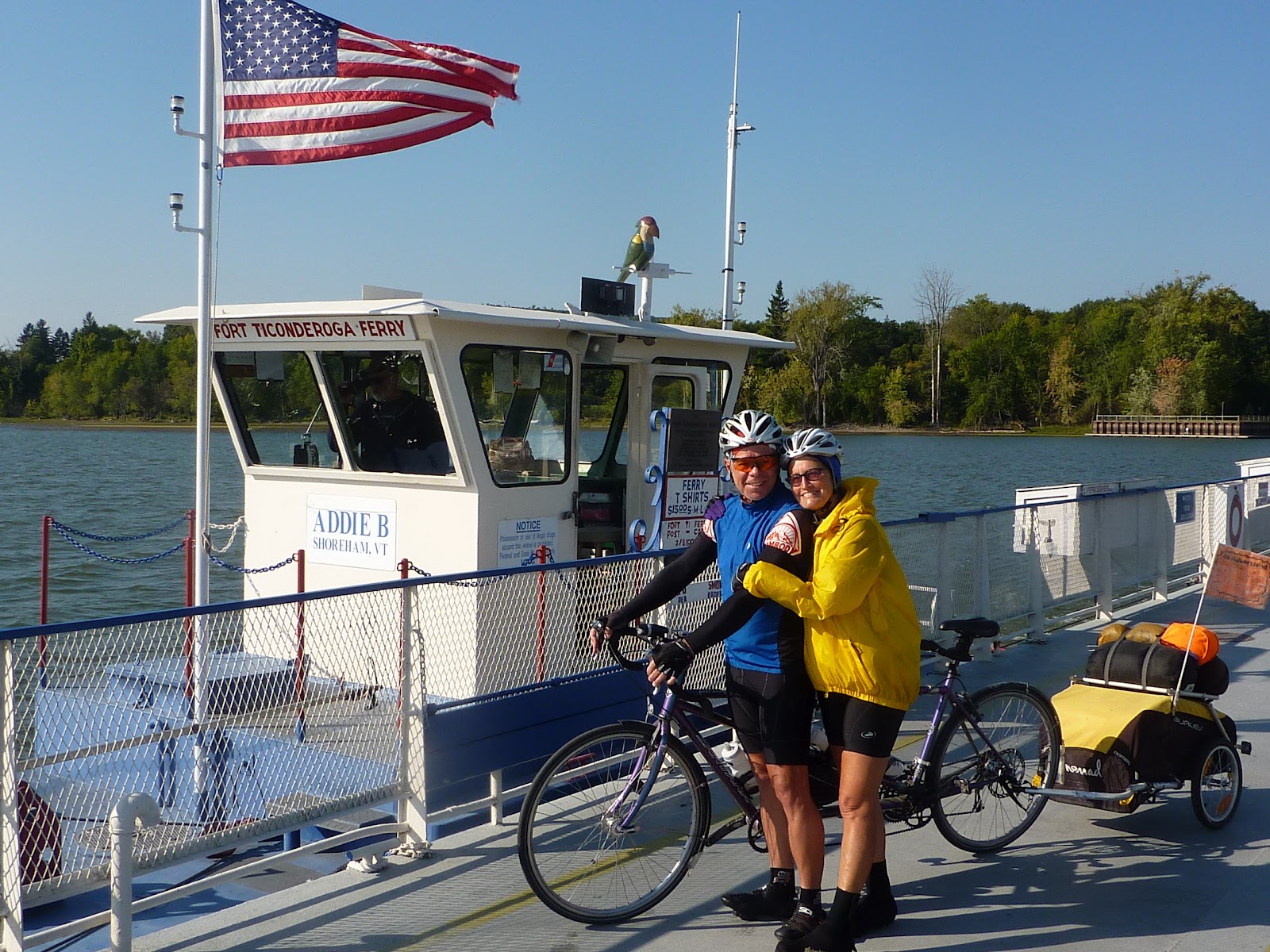 | Crossing from New York to Vermont across Lake Champlain. That girl has some bikin’ legs. |