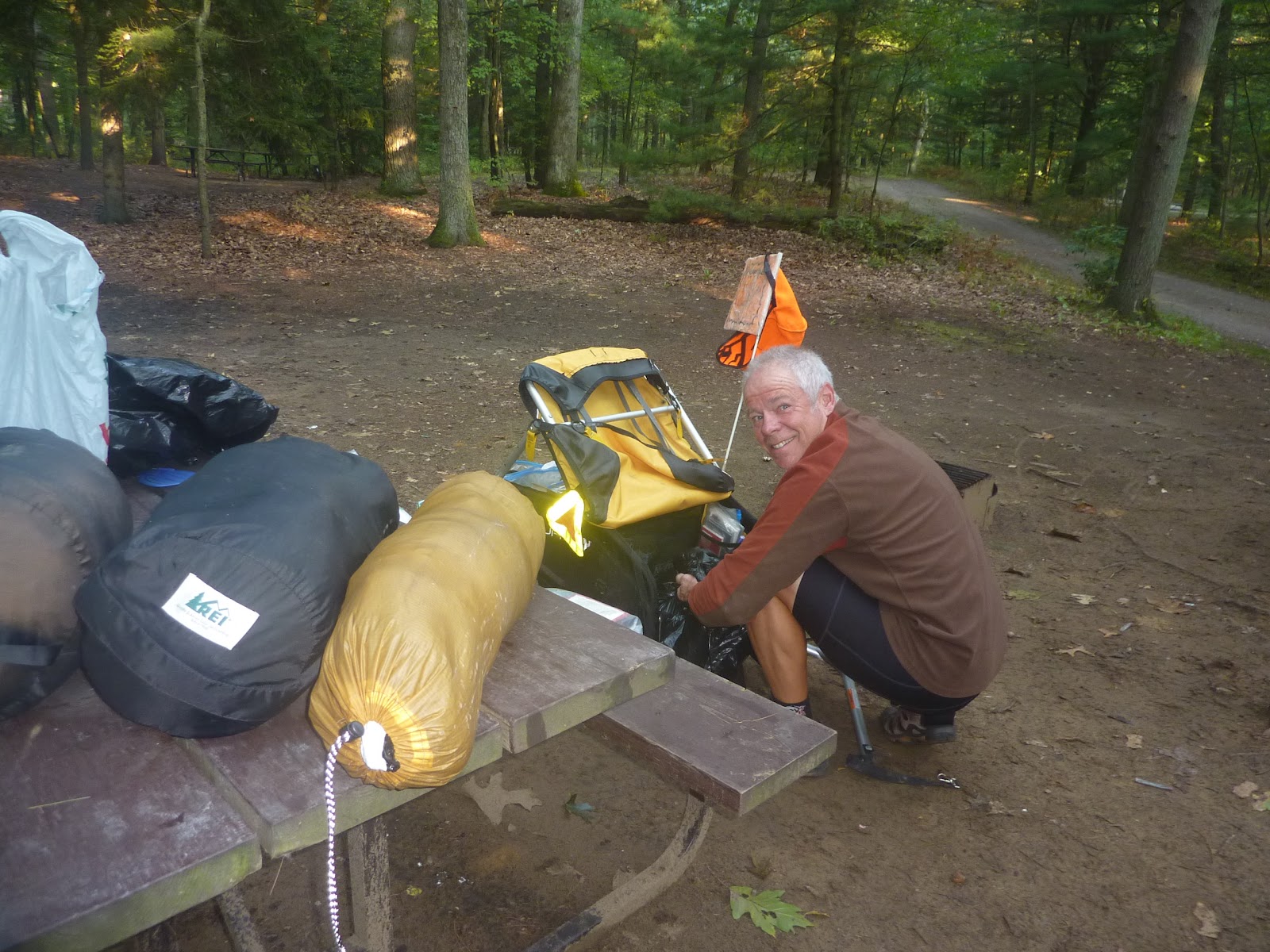 | Packing up after yet another night in the tent. |