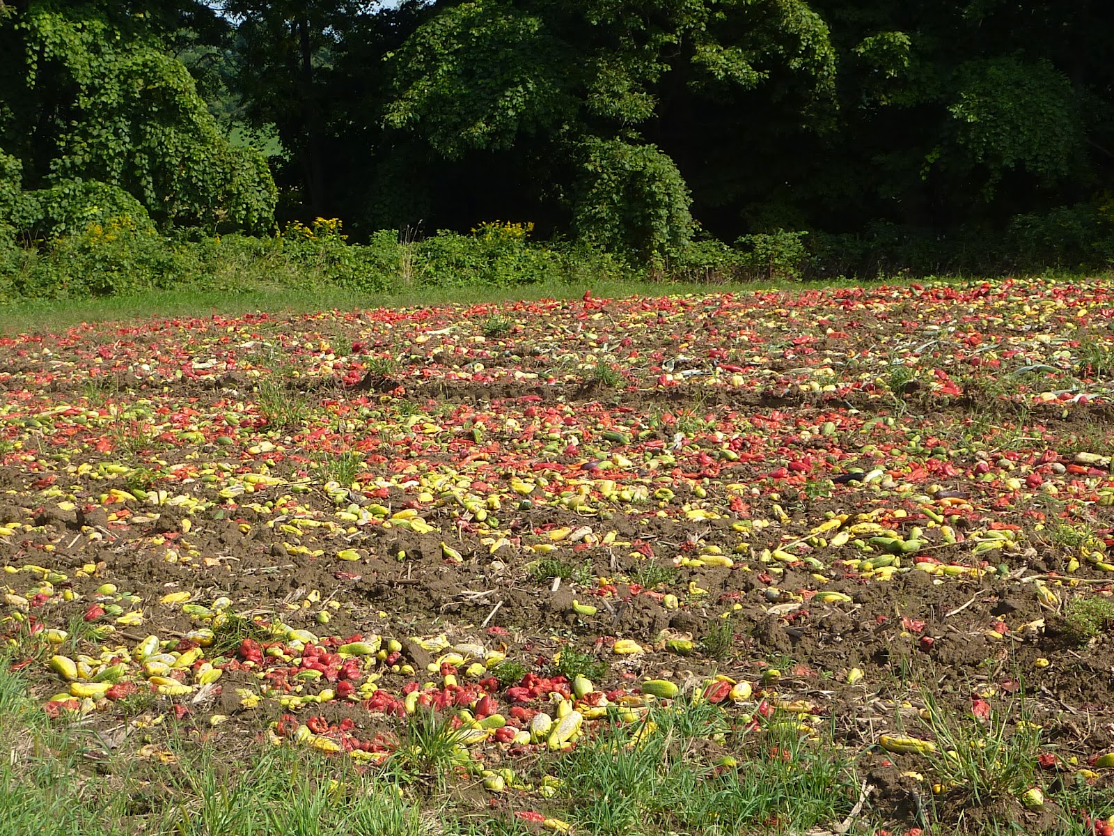 | Colorful vegetables spread on a field. Compost? |